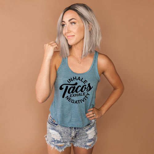 Inhale Tacos Exhale Negativity Tank Top, Cinco De Mayo Tank, Vacation, Womens Racerback Tank Top